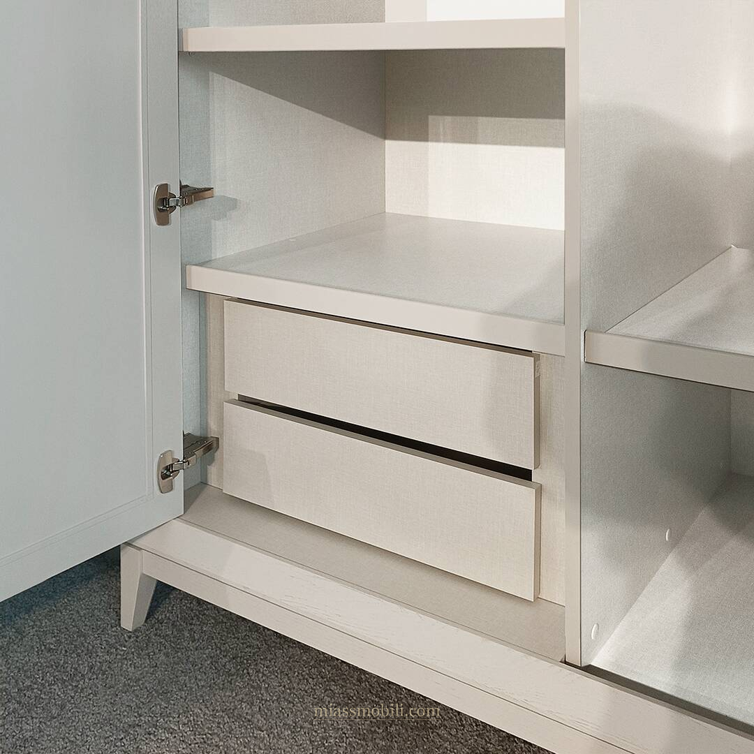 Ящики снабжены направляющими с системой доводки, что обеспечивает их бесшумное и плавное движение.